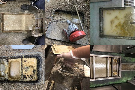 厨房の溝から排水が上がってきているとのことで、現場へ向かいました。グリストラップも正常に流れていなかったのでお客様に作業内容と費用の説明を行い了承を得てから作業を行いました。丁寧に排水管の高圧洗浄作業を行い、無事排水が流れるようになり作業完了です。